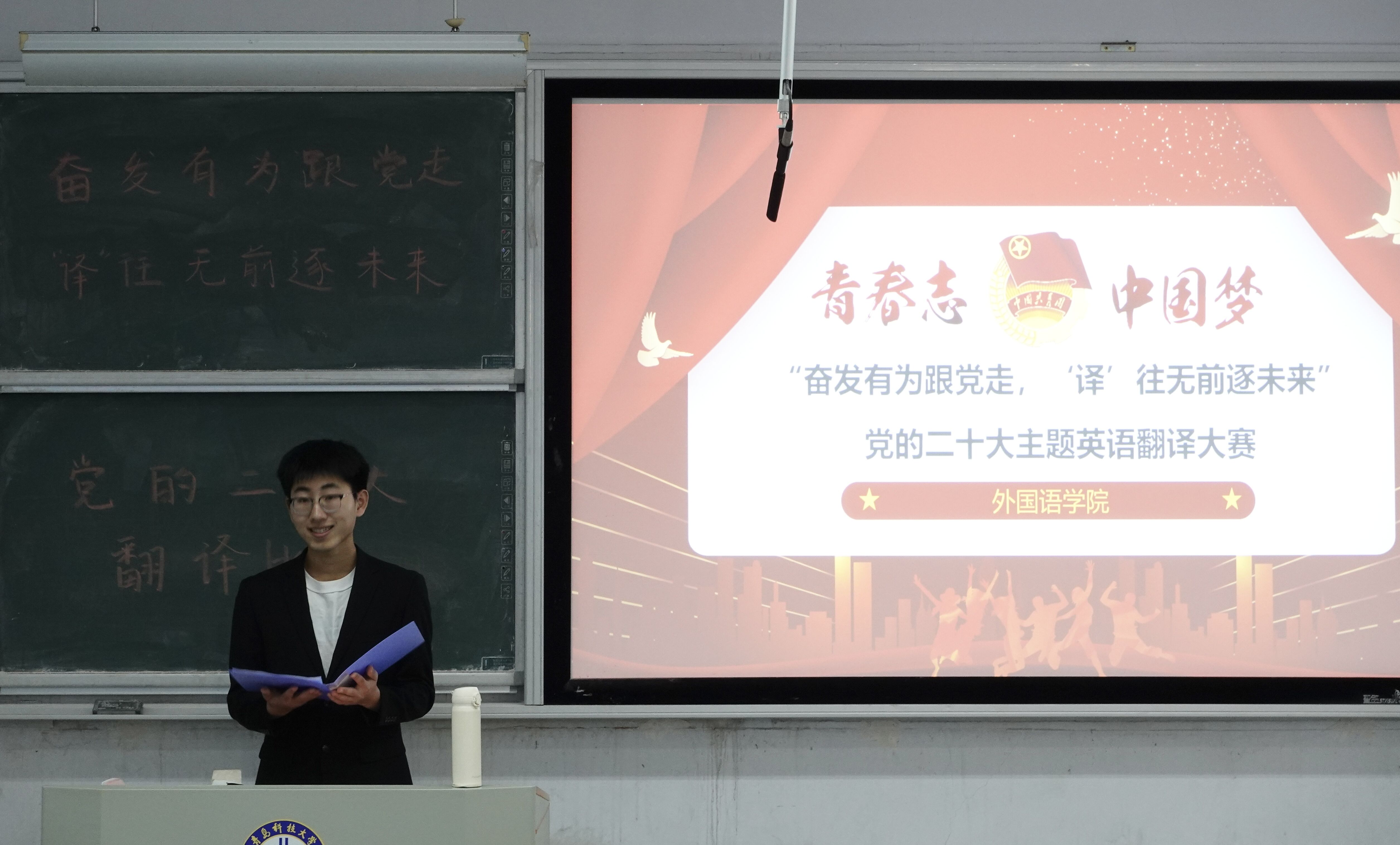 为了学习贯彻党的二十大精神,更好地通过英语向世界讲好中国故事,传播中国声音,展现英语独特的语言魅力和fun88官网体育学子的精神风貌,fun88官网体育于12月6日下午2:30在弘毅楼E105教室举办了“奋发有为跟党走,‘译’往无前逐未来”党的二十大主题英文翻译大赛活动。