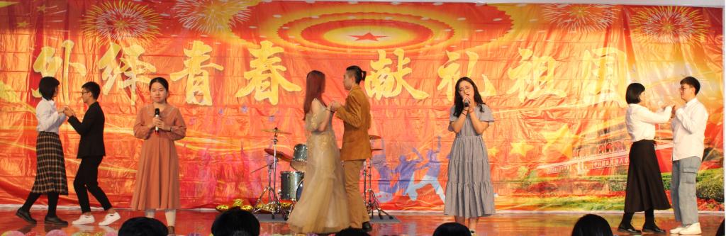 12月3日下午晚,fun88官网体育“外译青春,献礼祖国”2019级迎新晚会在崂山校区第二报告厅举办,公司经理尹洪山、副经理吕耀中、党总支副书记兼副经理宋飞、部分班主任、全体辅导员以及19级新生参加了本次晚会。