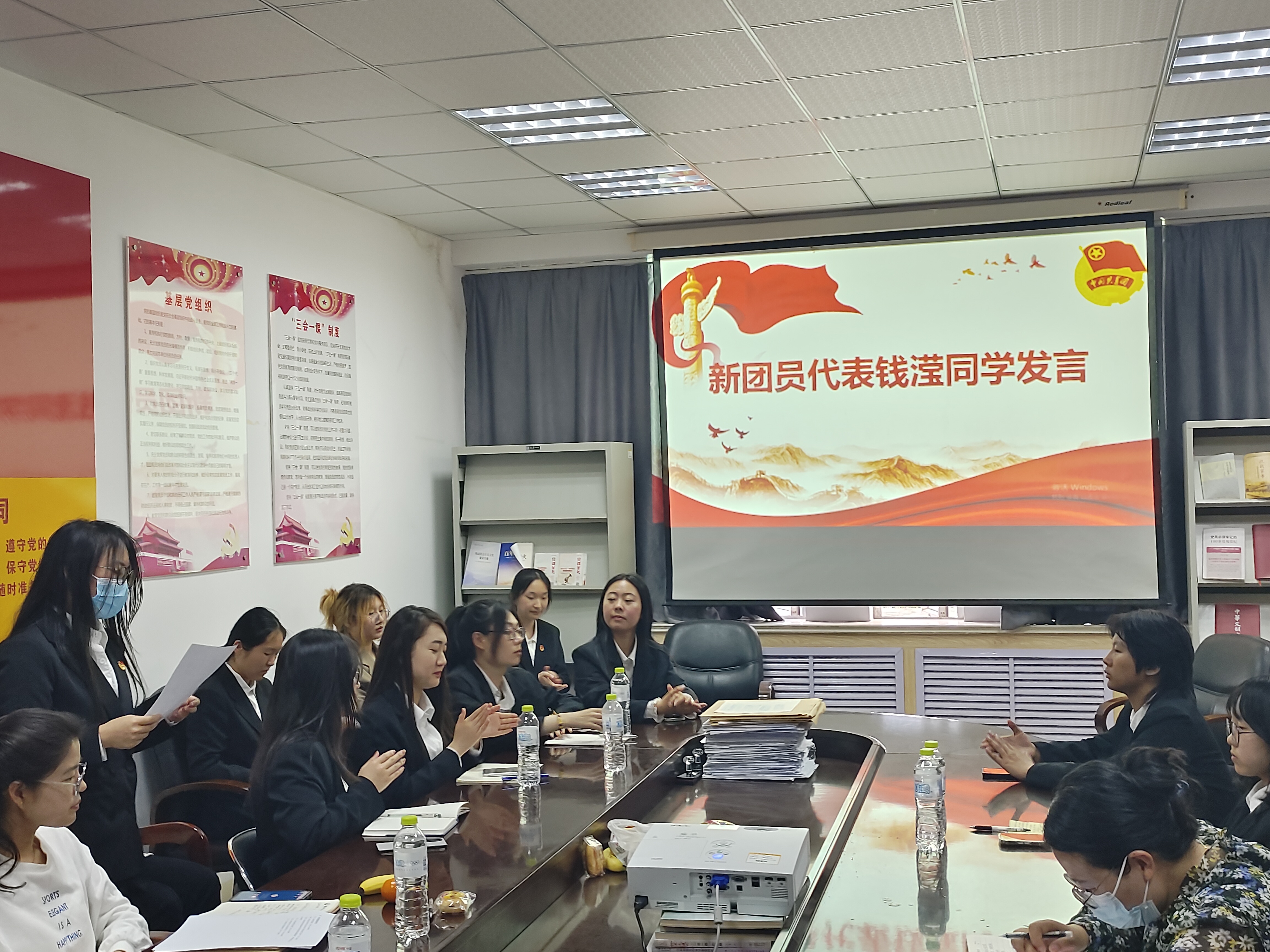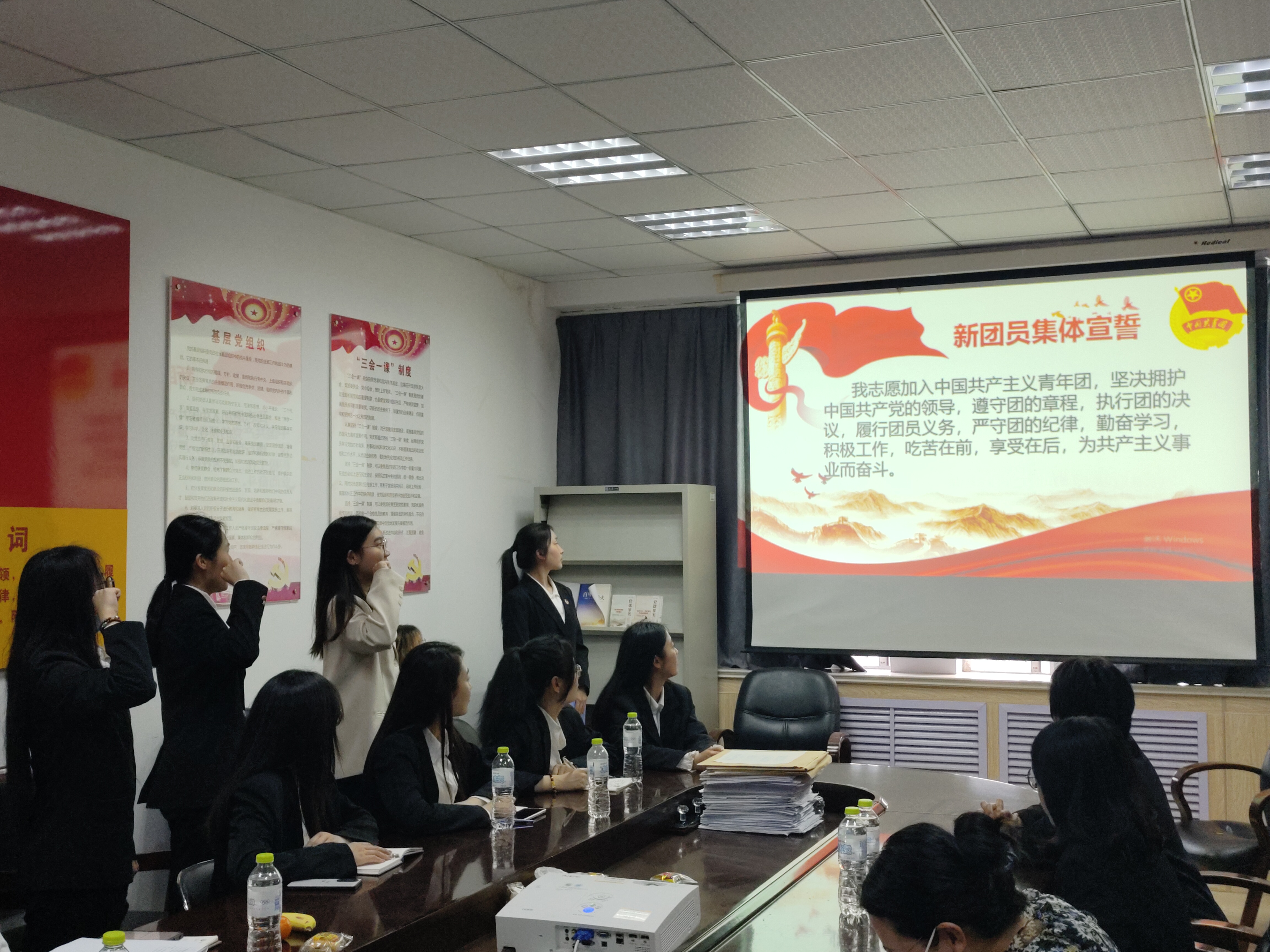 新时代造就新青年。为激励广大团员传承红色基因、铸牢理想信念、勇担时代重任,坚定不移听党话、跟党走,努力成长为堪当民族复兴重任的时代新人,5月16日17:00,公司团委在公司楼502会议室举行“团徽耀青春,奋楫再出发”主题团课暨2023年新发展团员入团仪式。出席本次活动的有公司全体团委老师,两位新团员以及2022级全体班长、团支书。