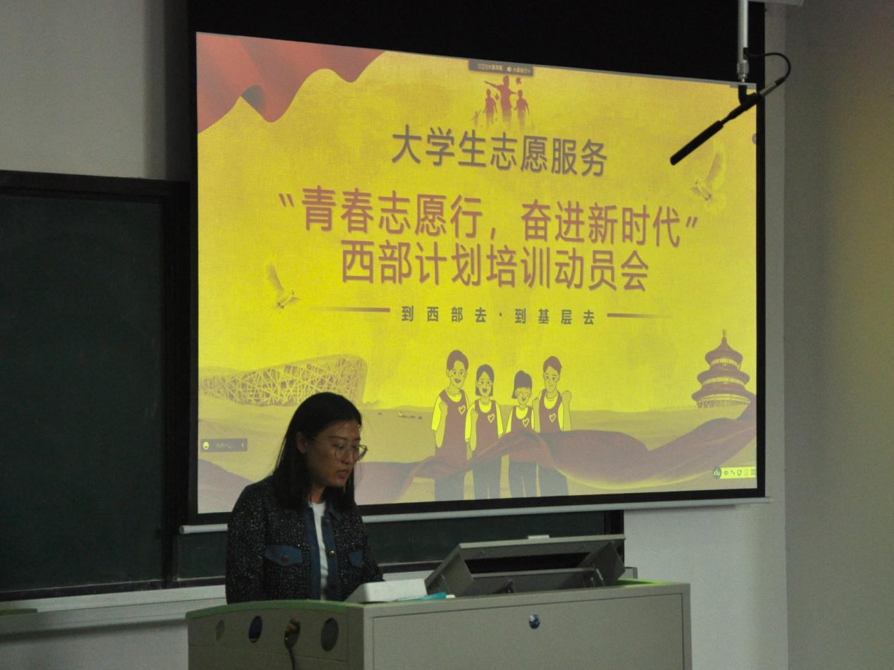 会议主持人首先介绍了国家“西部计划”部分政策以及目前实施情况,简单阐述了参加“西部计划”的意义。接着,四位优秀研支团成员进行了个人经历分享,同时向大家介绍基本的选拔要求与流程。通过线上线下结合的方式,四位宣讲者热情细致的向大家分享了令他们难忘的援助经历,鼓励大家努力学习,积极参与,为自己的人生增添这一抹亮丽的色彩。