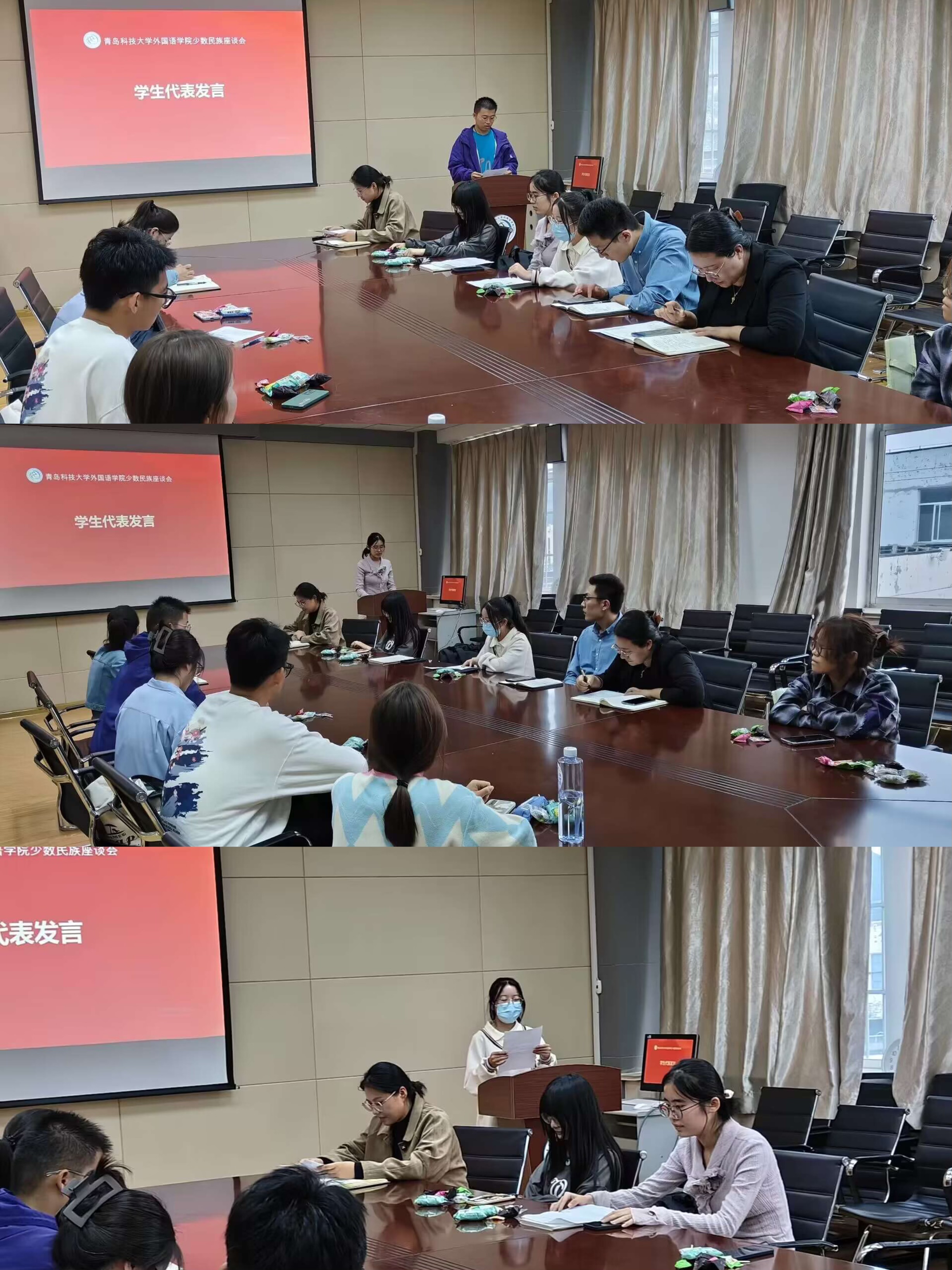 三位少数民族同学代表也进行了发言,他们都表示以后会积极与同学们交流,团结一心,共同维护民族团结。