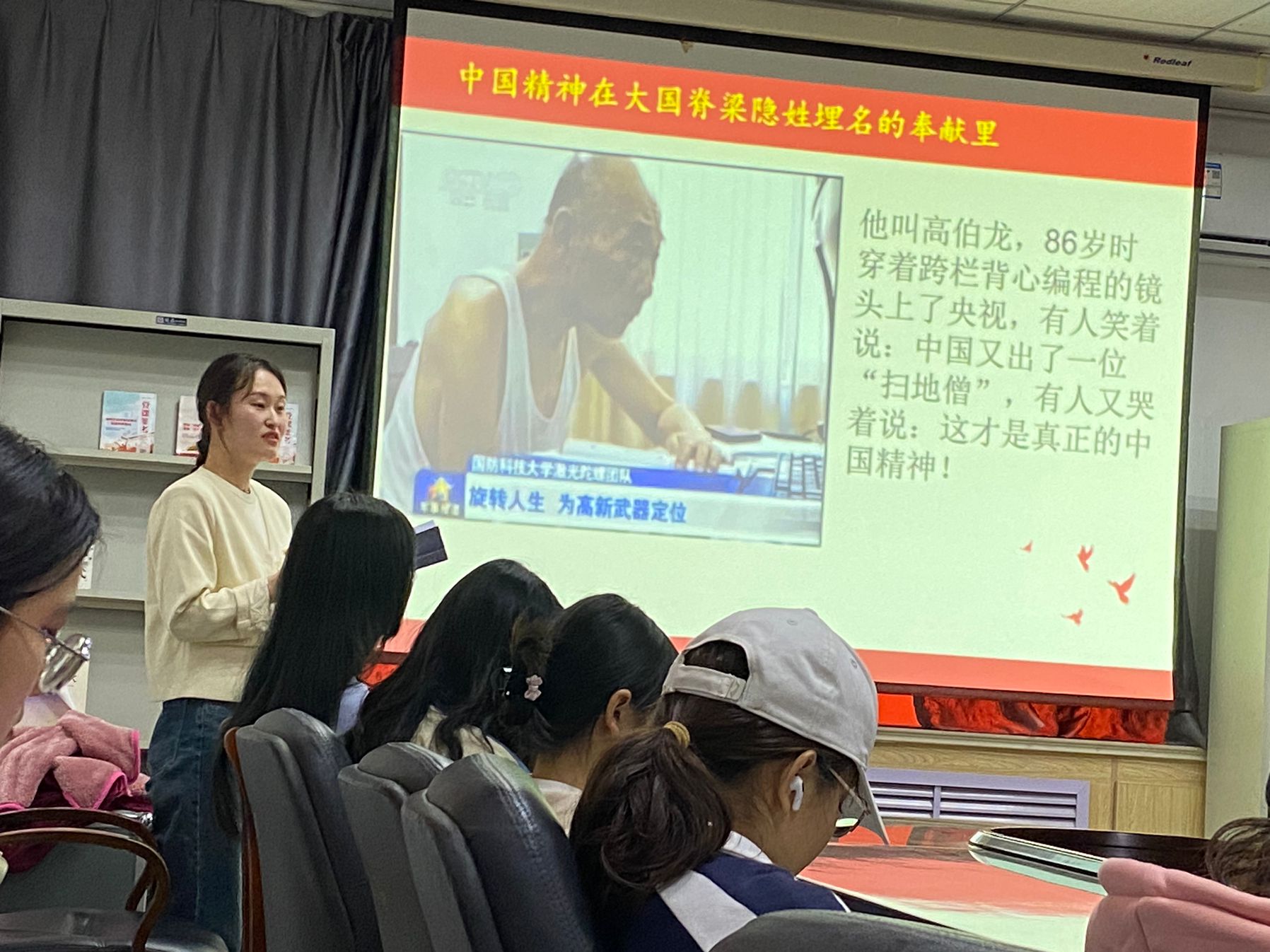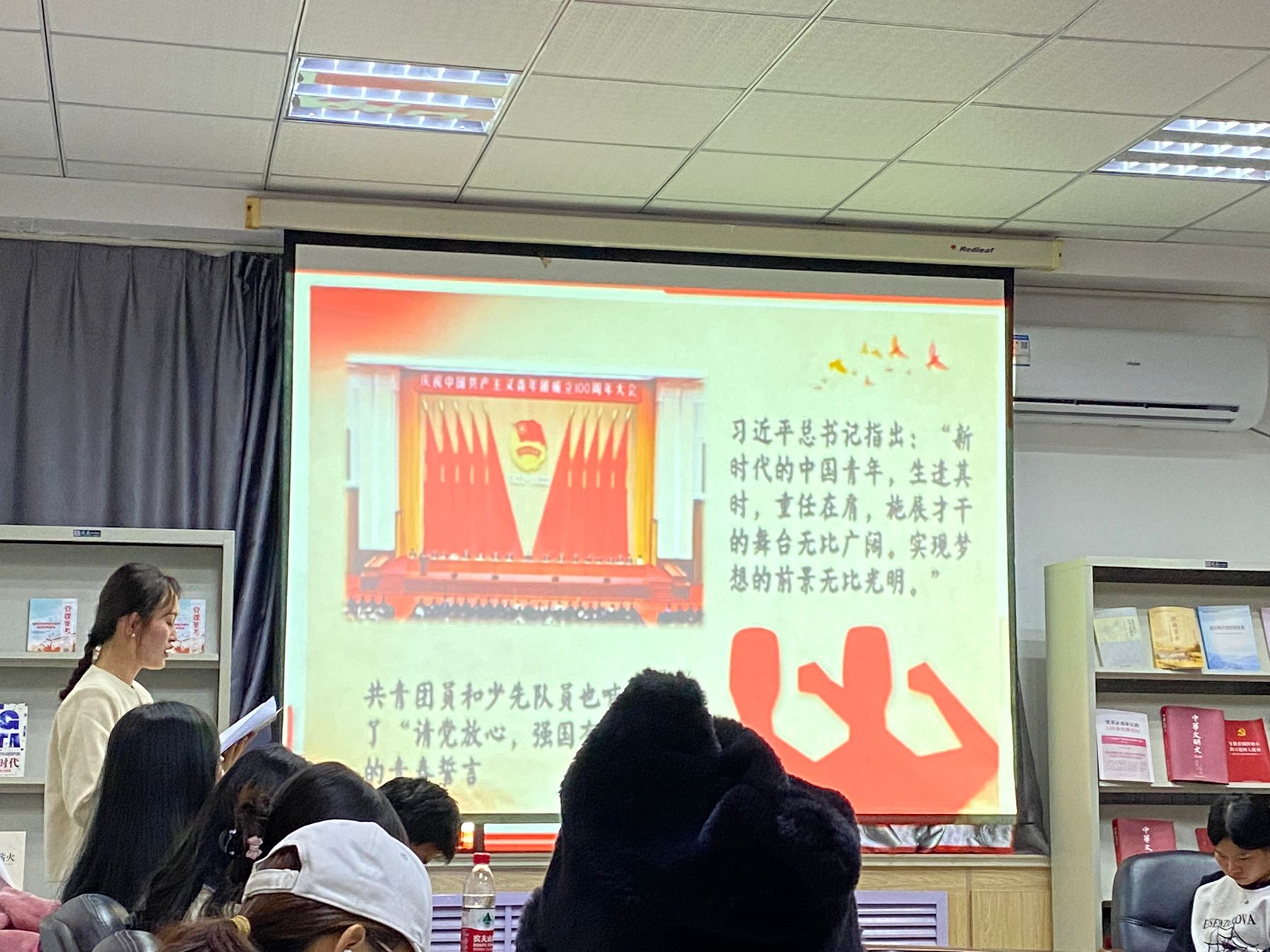 本次培训由李微同学主讲,她提到青年要心中有目标,脚下有行动,做新时代的见证者、开创者、建设者。我们要团结一心,共同担当起时代的重任,齐心协力地为了实现共同的目标而努力奋斗。