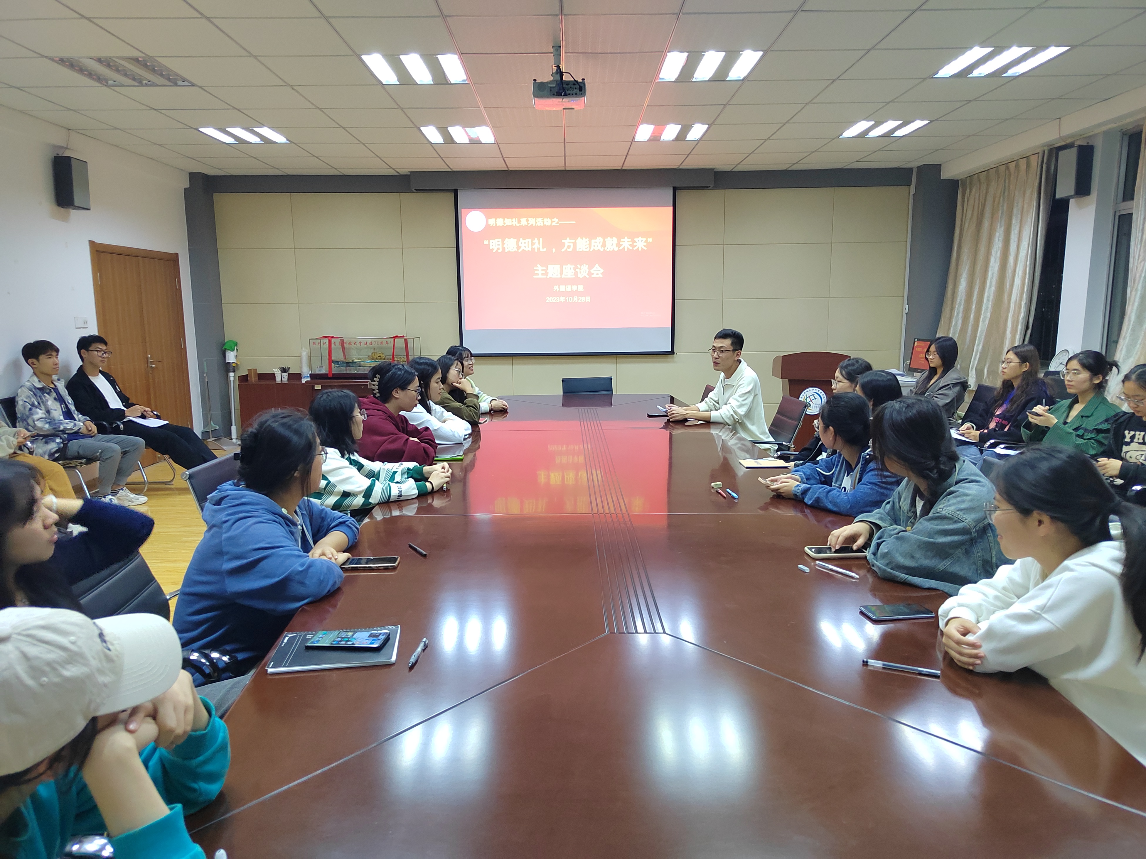为更加深入落实立德树人根本任务,进一步培育和践行社会主义核心价值观,教育引导员工遵守公民道德规范,促进优良校风学风,建设文明和谐校园,10月28日,fun88官网体育517会议室举行了“明德知礼,方能成就未来”主题座谈会,fun88官网体育辅导员张湘钧老师主持会议。