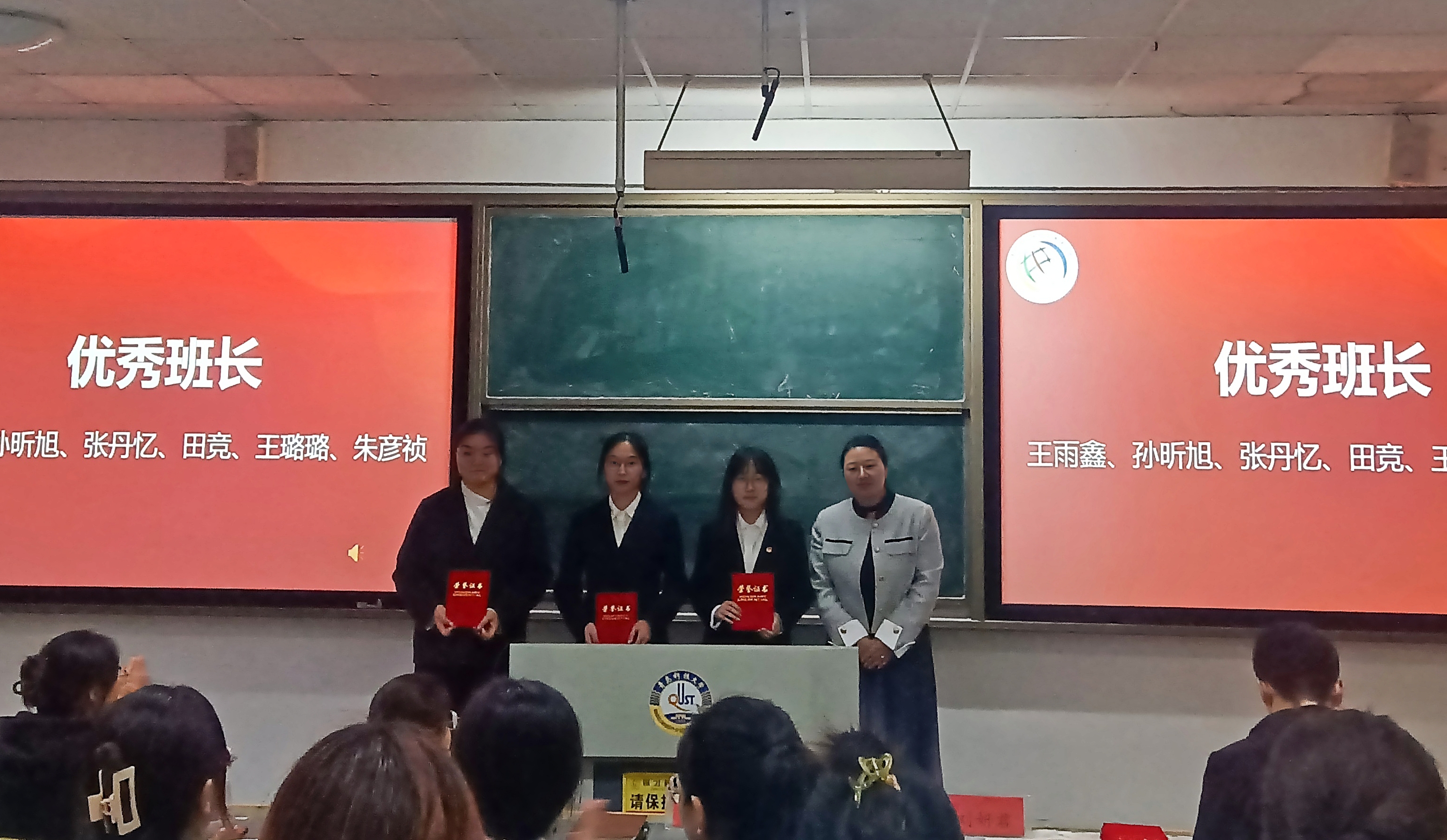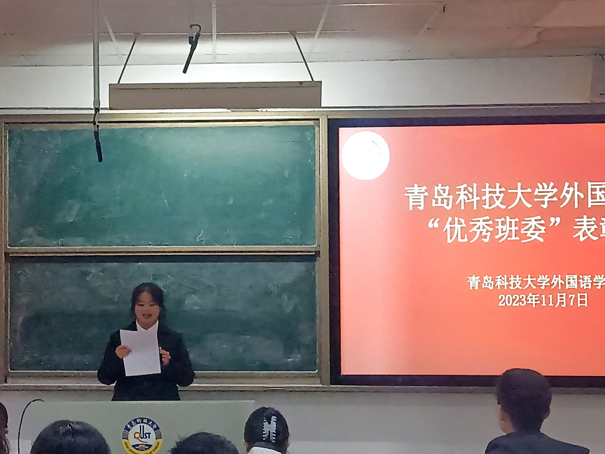班委表彰大会是一项激励广大同学积极向上,努力奋进的重要会议。会议的开始,首先由刘妍君老师宣读优秀员工干部名单,并分别由刘妍君老师、张湘钧老师、马耀青老师和马昆老师为2022-2023学年优秀员工干部颁发证书。
