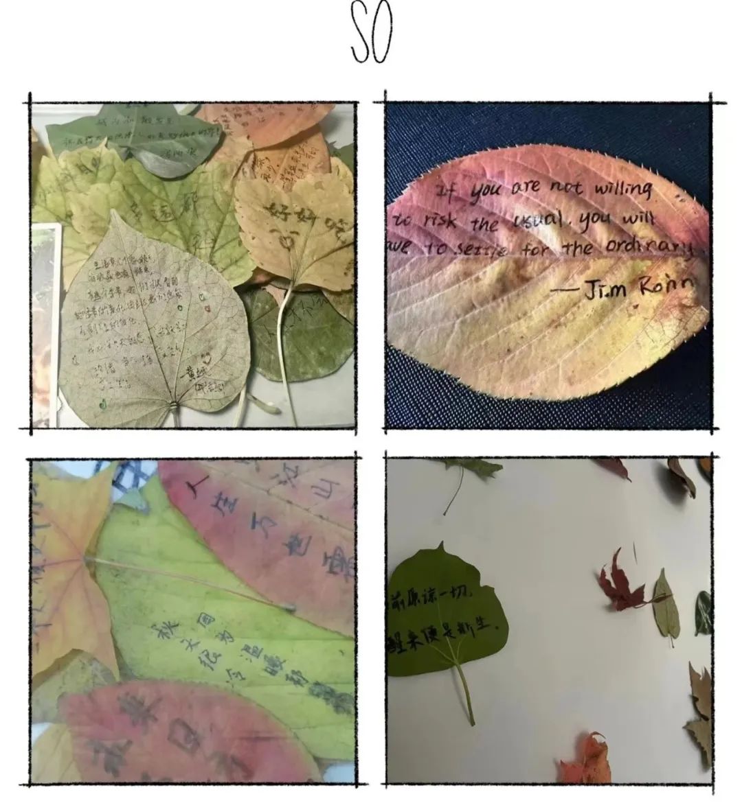 本次活动面向22级和23级各班,心语协会号召心理委员积极动员班级同学参与其中,搜集落叶写下带有温度的文字,用温暖的言语和心灵的触摸,为自己和他人注入一份关怀和温暖,更好地面对挑战和困惑。