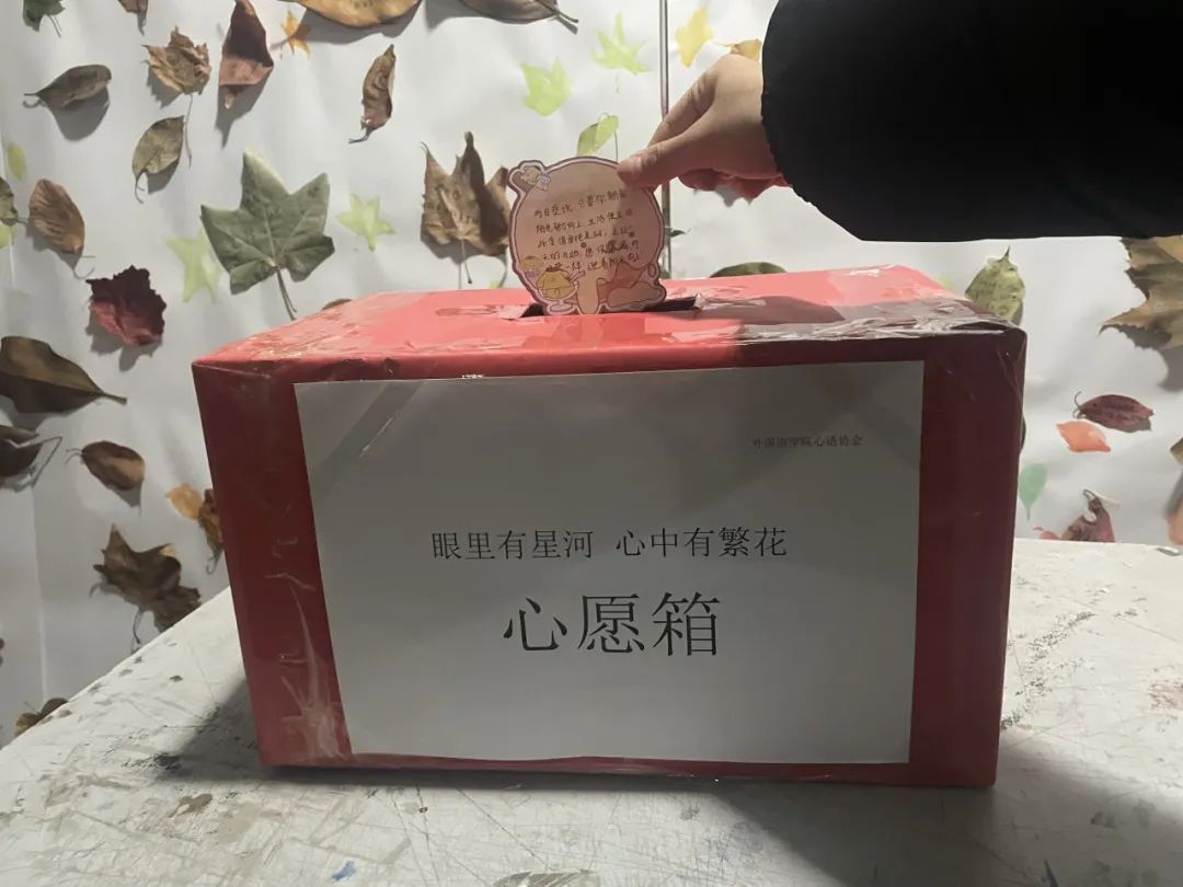 心语协会组织各班心理委员收集同学们的便利贴,汇总后放置于fun88官网体育楼下心愿箱中组织大家随机抽取。若抽到了烦恼就予以解答,若抽到了暖心话语就分享感动。每一张心愿便利贴不仅承载着同学们近期的情绪表达,还寄语着温暖祝福。