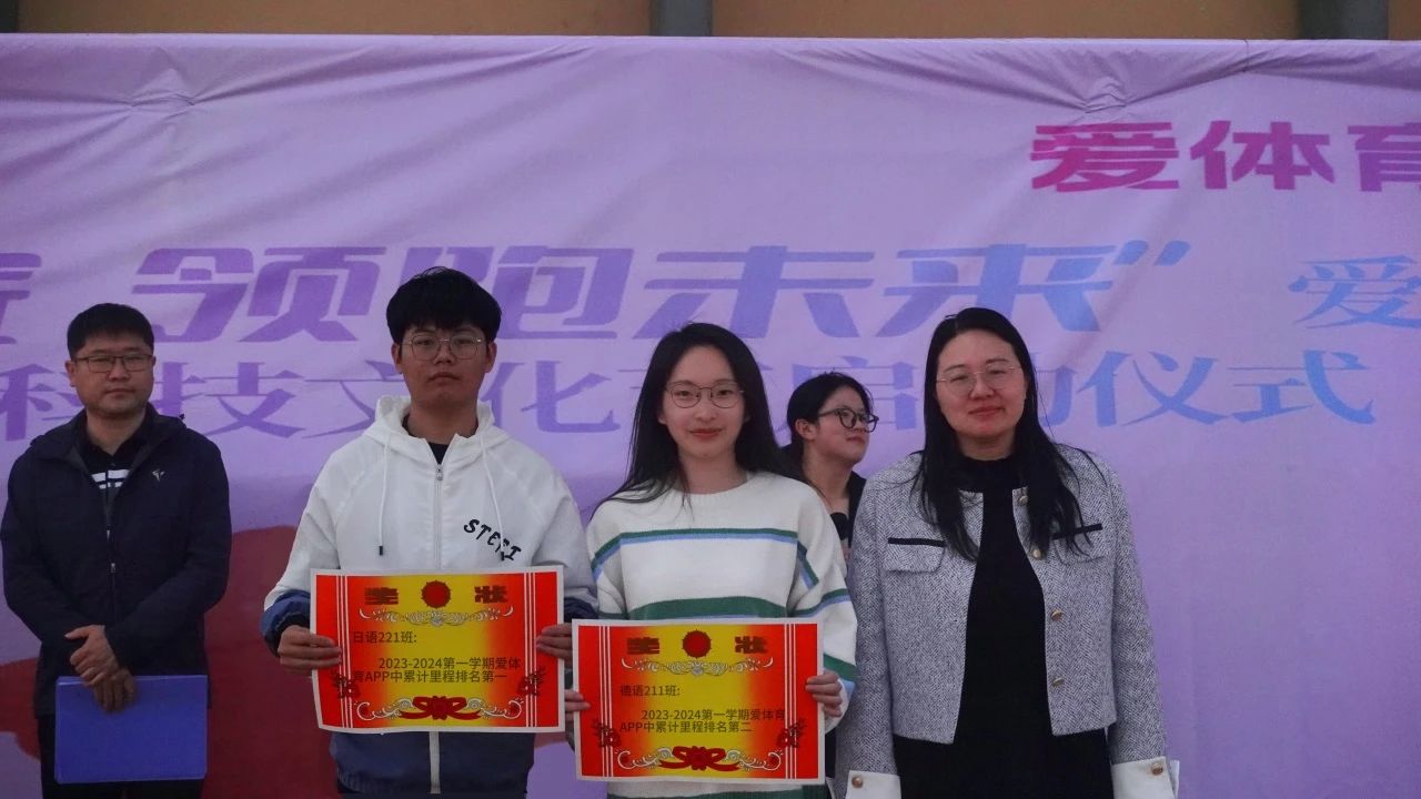 启动仪式进行第三项,党委副书记兼副经理马寒老师、团委书记兼学工办主任刘妍君老师代表fun88官网体育对上学期在爱体育健康跑中表现优异的员工及班级进行颁奖。