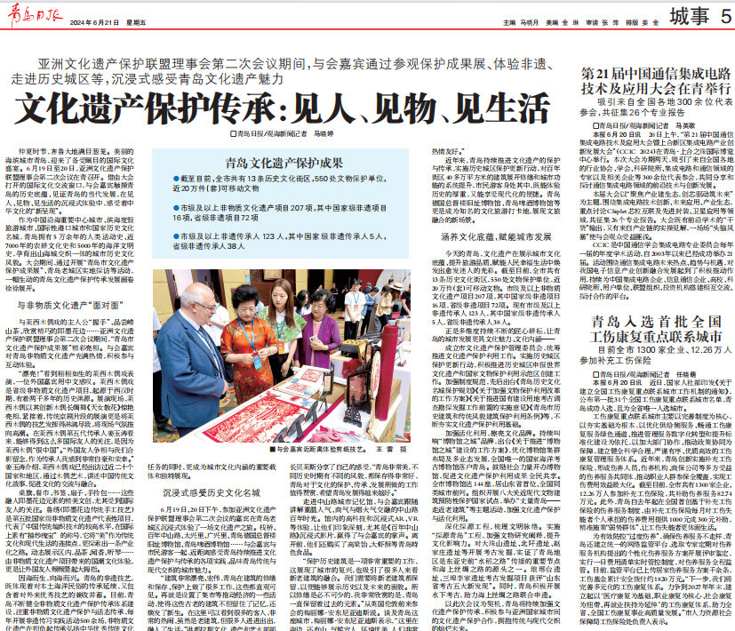 会议期间,青岛市文化和旅游局精心策划了“青岛市文化遗产保护成果展”。受大会组委会邀请,fun88官网体育积极响应,经过严格选拔,以“非”你莫属团队成员为核心,组建了一支14人的外语志愿者服务队,积极参与到成果展的筹备与举办中,为国外参展嘉宾提供了专业的翻译志愿服务。
