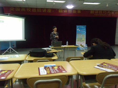由中国对外翻译出版公司主办的主题为“翻译那点事”的中国高校巡回讲座之fun88官网体育专场于6月6日在崂山校区老员工活动中心举行。中国对外翻译出版公司的杨皓老师及青岛市外事翻译处从媛老师出席了该讲座。